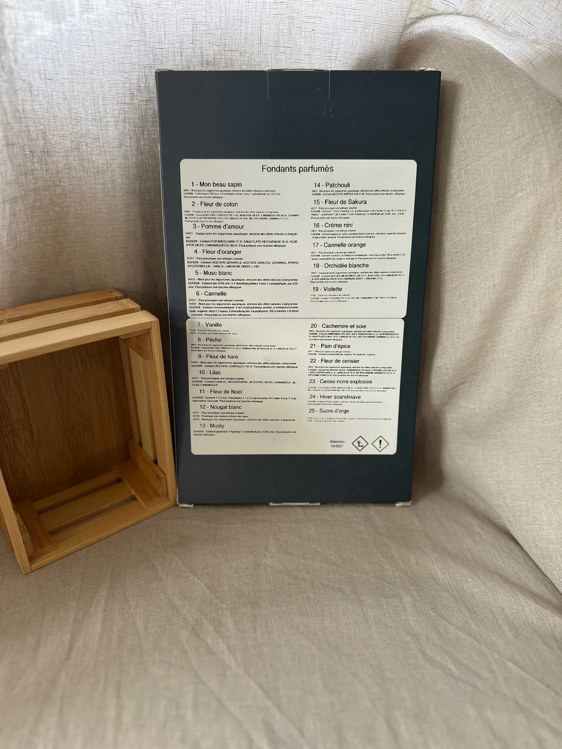 Calendrier de l’avent de 25 cases composé de 25 fondants parfumés.