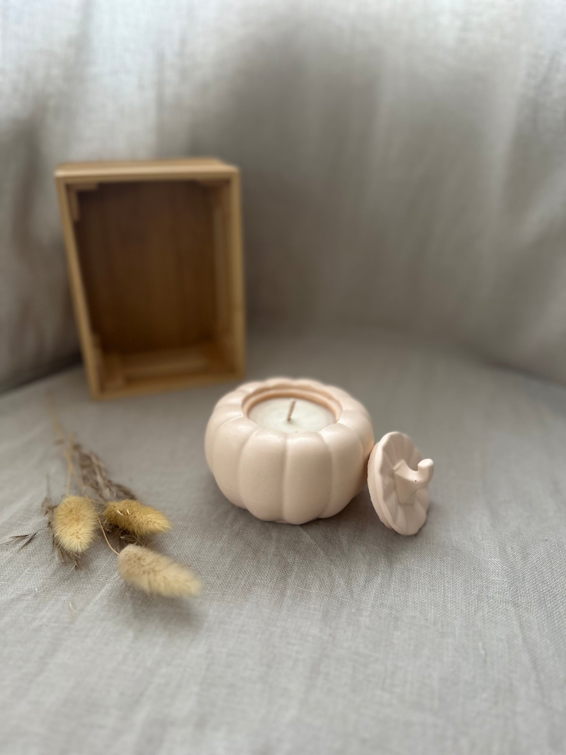 Bougie à base de cire végétale et de parfums de Grasse, contenant en jesmonite, réalisée entièrement à la main (peut contenir des imperfections mais n'altère en rien la senteur ni le charme)